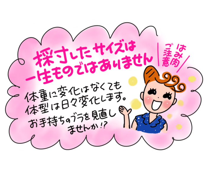 ブラは初来店される約7割の人が自分に合っていないものを着けていらっしゃいます~間違ったブラ選びは、余分なはみ出し肉を作ってしまう原因にもなるんですよ。 自分に合った採寸は一人でも出来ますが、その場合は前かがみになってしまうため、正確なサイズが測れないことが多いのです。 また、サイズが合っていても、バストの形によりブラのデザインを選ぶことも大切なんです。オシャレは足元からと言いますが、ホントのオシャレさんはランジェリーからではないでしょうか。